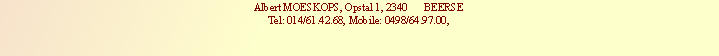 Voorzitter : Albert MOESKOPS Opstal 1 2340 Beerse Tel :014/61.42.68 G.s.m. 0478/64.97.00 E-mail : albert.moeskops@telenet.be